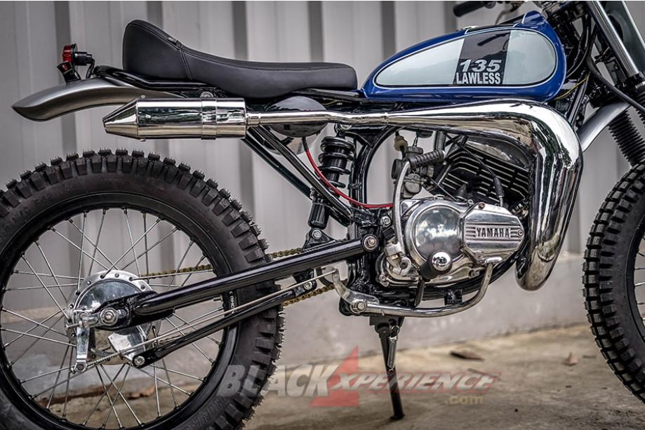 Dari sisi tunggangan, Yusuf mengusung tangki layaknya Vintage Enduro dan kuris pengendara dibuat dengan backside. Bagian shock belakang diubah menjadi monoshock. Sementara bagian depannya tetap mempertahankan suspensi aslinya.